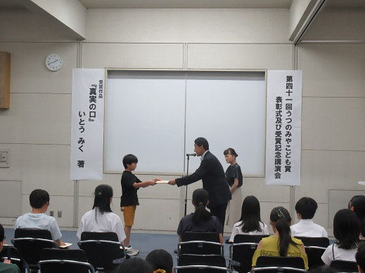 ◆小学5、6年生の選定委員(今年度は30名)が1年以内に発行された日本の作家の本を月に4冊読んで、その中から「月の本」を選びます。年度末(3月)の選定会議のときに、その年の「月の本」の中から、最優秀作品を1点選び「うつのみやこども賞」が決定します。